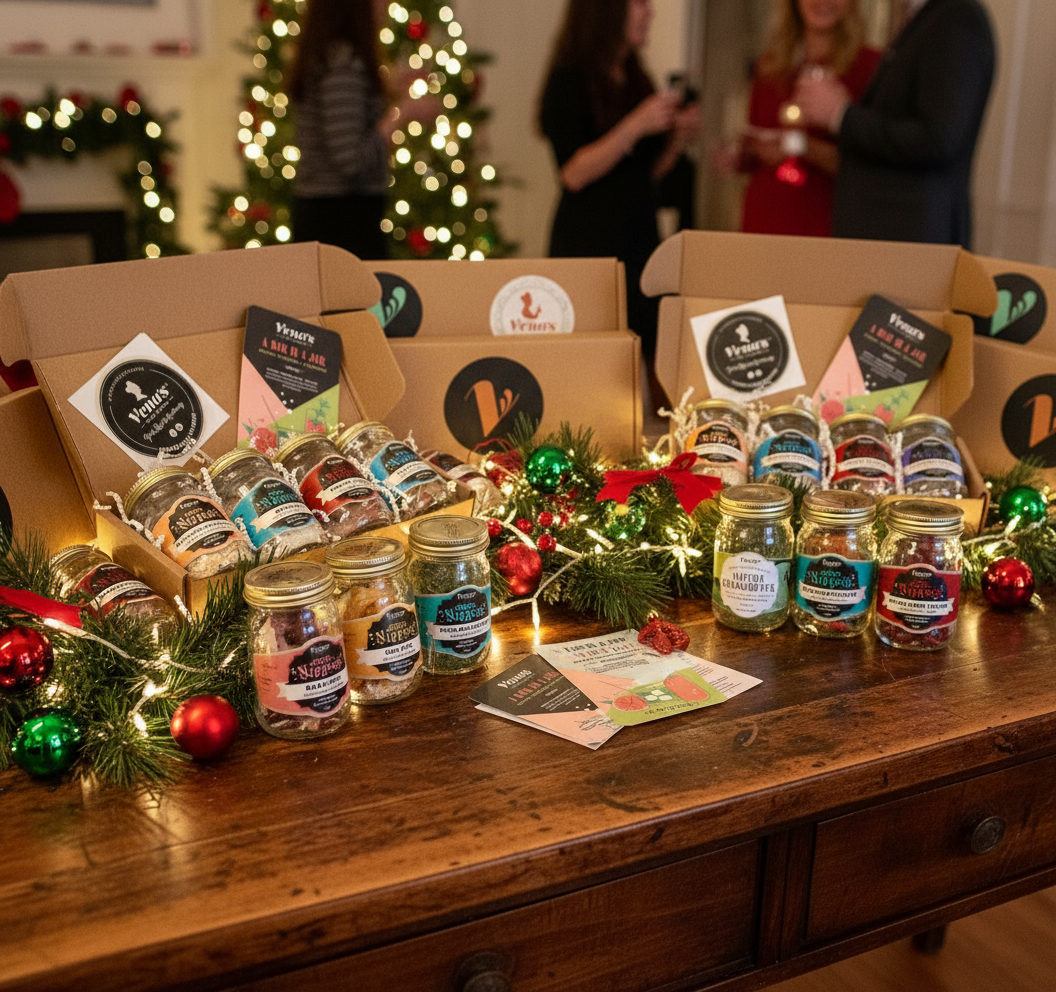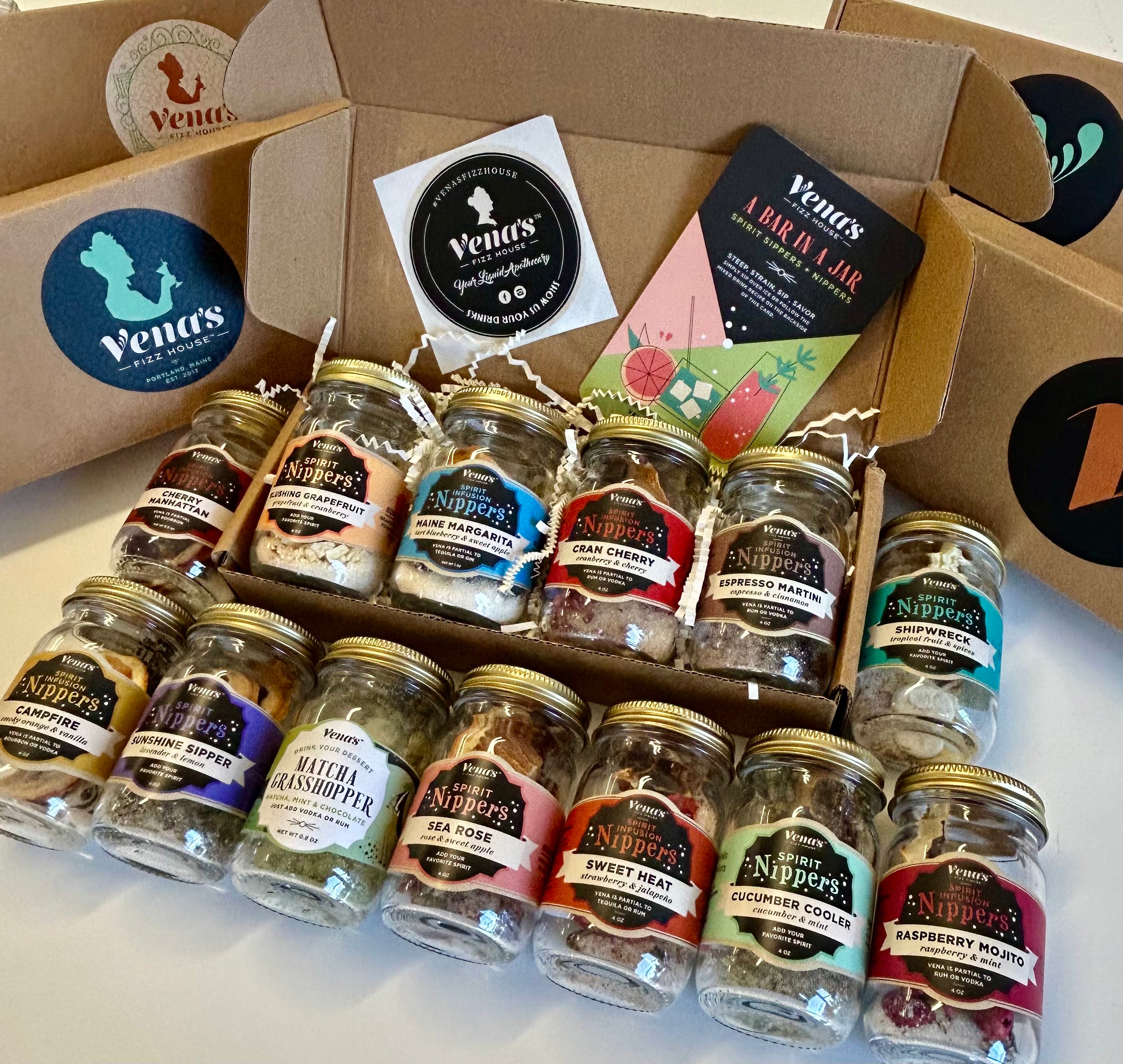 The best way to try our flavors! ....or just pick out 4 of your faves. Vena's Nipper Sampler Flight comes with four, 4oz. spirit nippers and our "Bar in a Jar" card for basic instructions. Also makes an excellent gift!